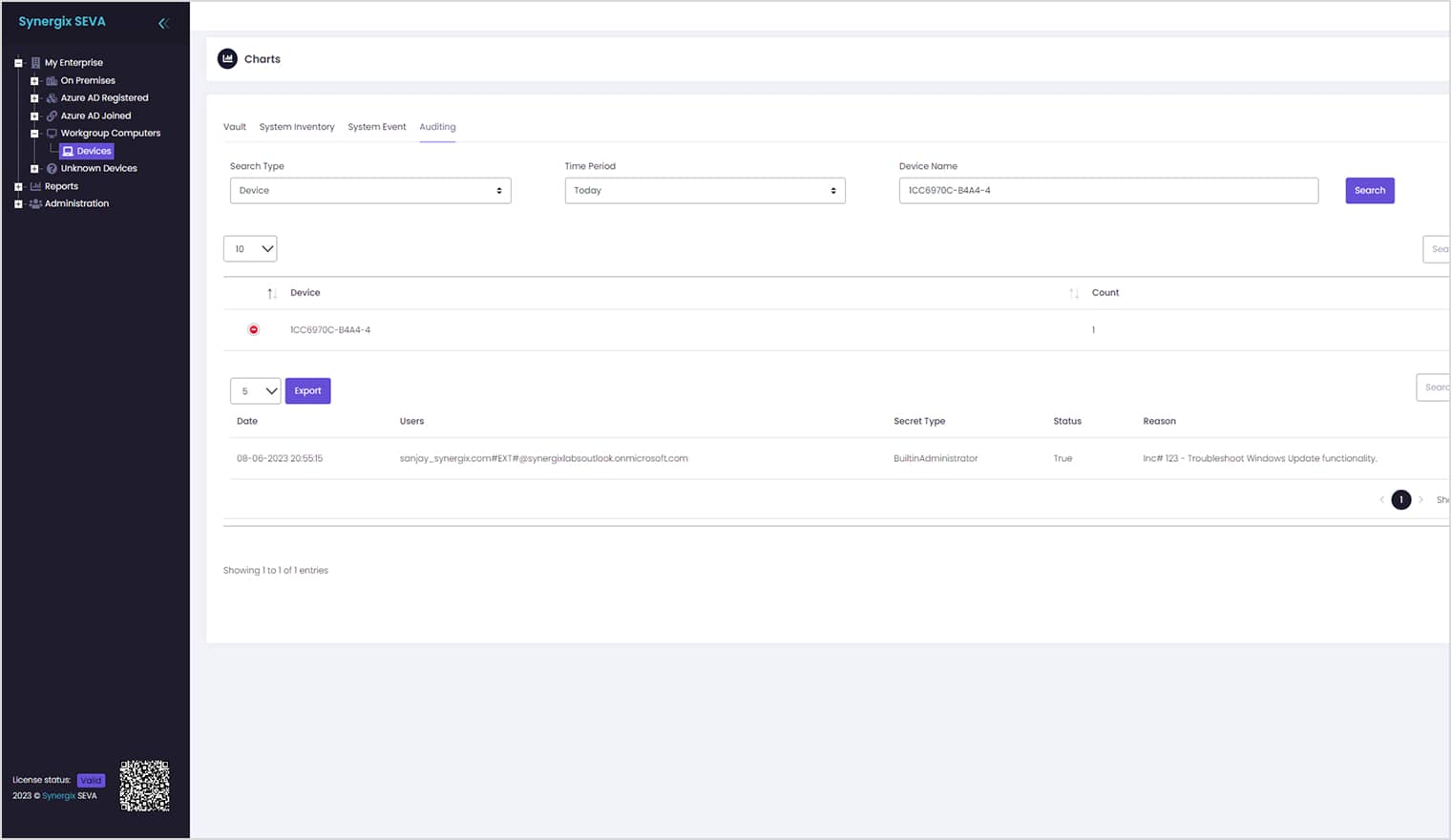 Passwords are rotated periodically and stored in encrypted format in your Azure Tenant. Password Complexity, Pass Phrases, Fine Grained Password Policy, One Time Password Use, Tamper Resistance further strengthens the capabilities of the product.